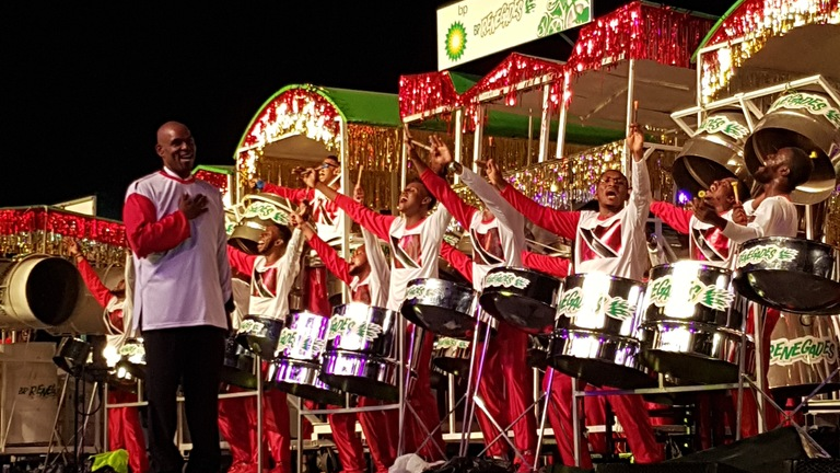 The largest stage that steel pans perform on is at Panorama in the Savannah Park in Port of Spain, Trinidad. This competition finds the best performing steel band in all of Trinidad and Tobago. There are three rounds where they narrow the bands from over a hundred to the top ten. From the top ten, the judges pick the best steel band for that year. Each band makes an arrangement of a popular song. This video is of BP Renegades when they one Panorama in 2019 with their arrangement of Hookin Meh.